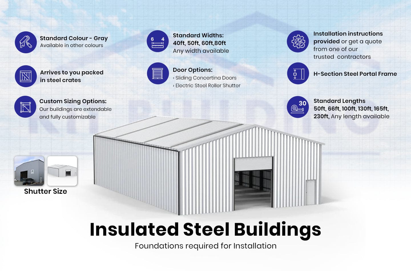 - Panneaux : Nos options de panneaux non isolés et de panneaux sandwich sont toutes deux couvertes par une garantie de 6 ans, offrant une tranquillité d'esprit pour votre investissement. Kit Buildings